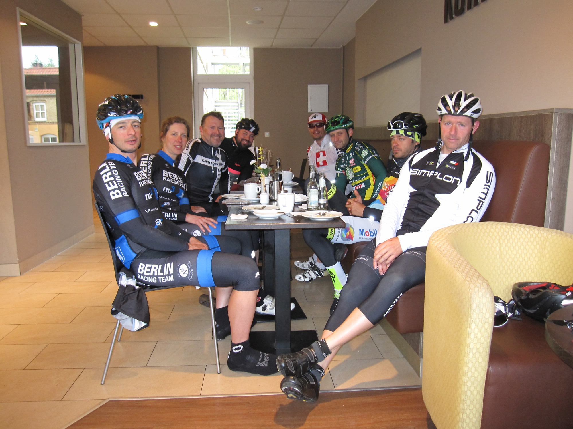 Führung durfte musste ich zum Glück keine Fahren und so erreichte ich mit fast frischen Beinen den bekannten Kuchen-Hot-Spot Konrad in Trebbin. Alles richtig gemacht. Auch die zwei Stück Kuchen lagen mir, sehr zur Verwunderung meiner MitfahrerInnen, nicht im Bauch und ebenso die Rückreise in die Hauptstadt gestaltete sich erfreulich. Schon klasse wenn man einen Velothon-Sieger als Windschattenspender vorne zu fahren hat.