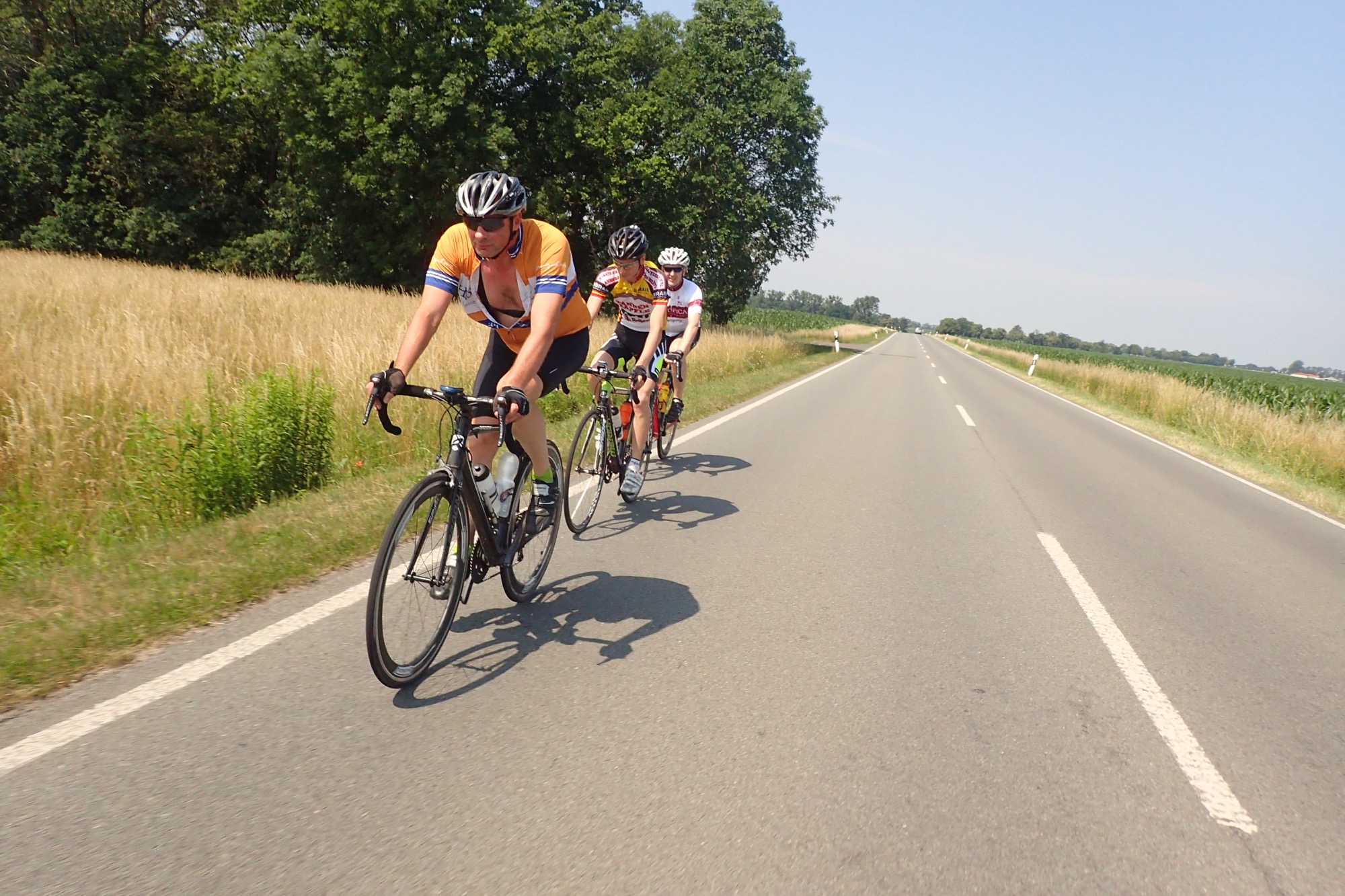 Als wir Tom in Vehlefanz verabschiedeten merkten wir beim Anhalten, wie heiss es war. Die Hitze drückte sofort unerbitterlich. Bloss schnell weiterfahren! Am Marwitzer Kreisel, nach der Verabschiedung von Karsten kam dann mein Einbruch. Keine Ahnung ob ich zu wenig getrunken hatte. An den Ozonwerten kann es nicht gelegen haben, denn diese waren gewohnt iim oberen-mittleren Bereich.