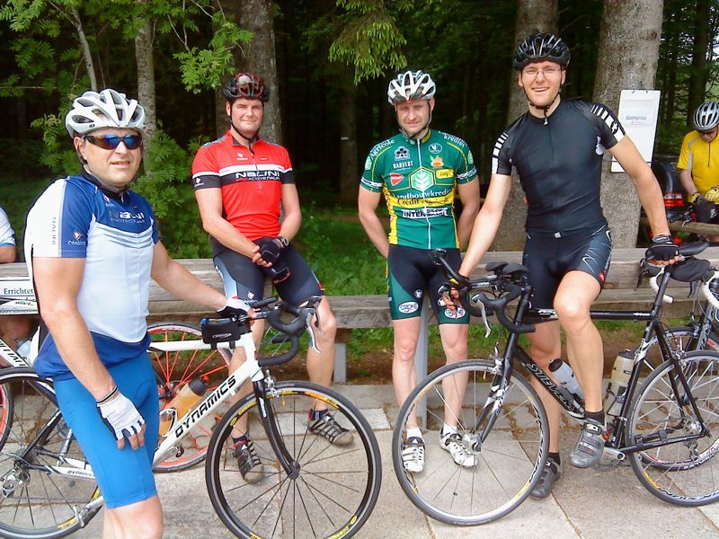 Oben durfte auch nicht lange gehalten werden, denn die Almgaststätte Kälbelescheuer sollte als Jausenstation dienen. Dort hin ging es eine nette Abfahrt hinunter, welcher dann wieder richtig steil wurde. Ein Einheimischer beschrieb den Anstieg so: Du denkst Du fährst in den Himmel. QuälDich.de hat da auch eine Beschreibung zu.