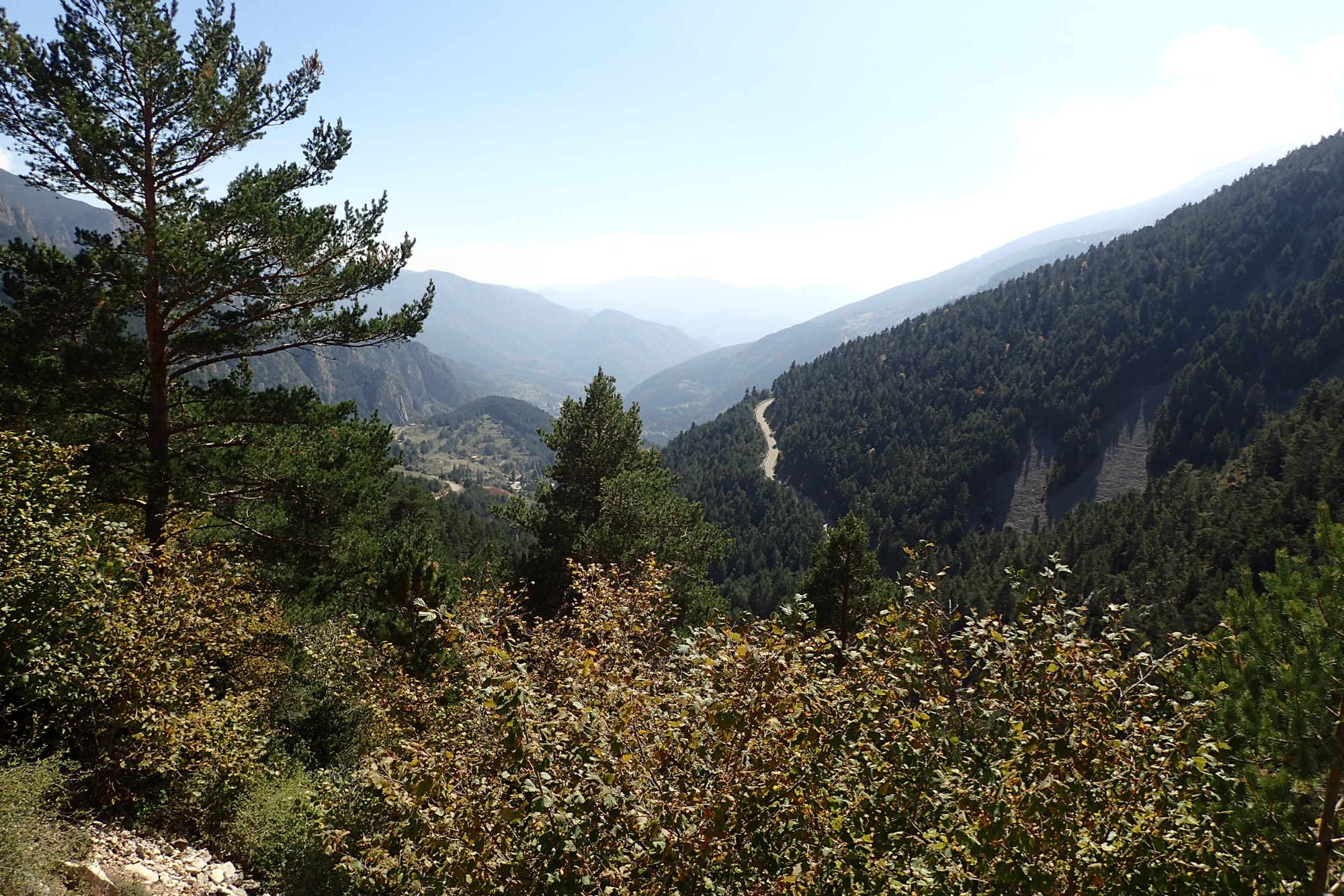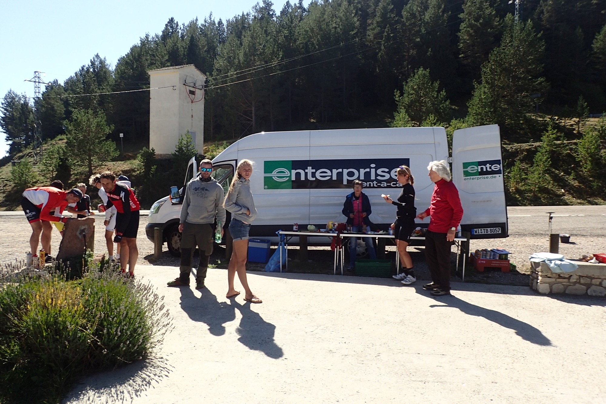 Nun führte die Straße einen Kamm in knapp 2.000 Meter Höhe entlang, der einen faszinierenden Blick auf Sant Llorenç de Morunys bot. Weiter ging es auf der perfekt asphaltierten Abfahrt herunter in den Ort. Dort gönnte ich mir in einem Café eine Cola mit viel Eis, bevor es auf die restlichen knapp 35 km ging. Kurz nach dem Ort rollte ich auf Liszt und Tom auf, die ich fast bis Brega, unserem heutigen Etappenort, begleitete. Die beiden wollten noch den Hausberg hoch, was ich ablehnte. Der Track war eh schon durch den Stich hoch ins Skigebiet ruiniert, da wollte ich mir nicht weitere Stiche einbauen, die im Endeffekt wie Verfahrer aussehen.