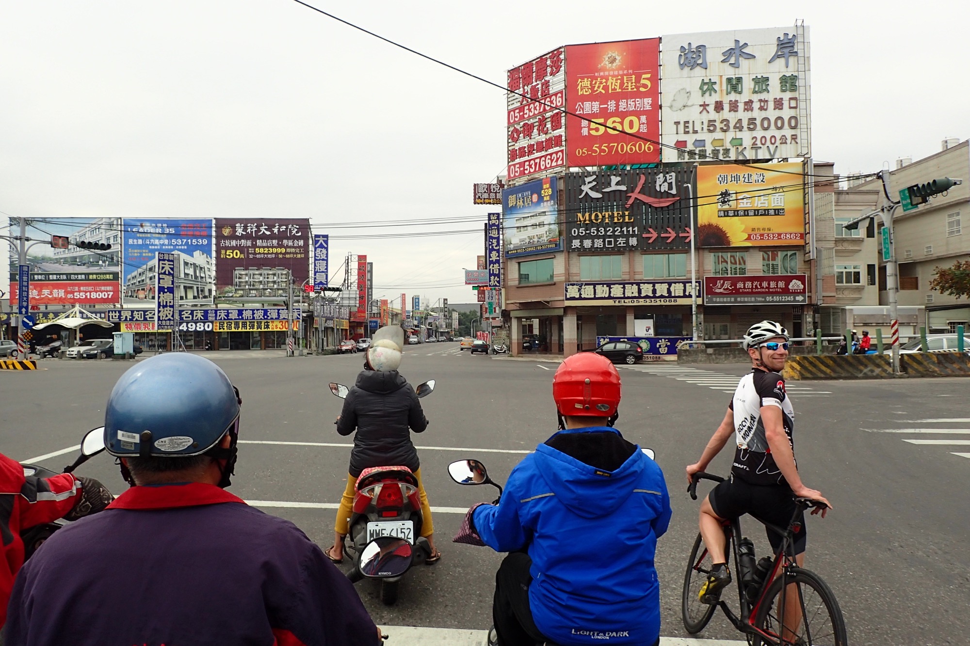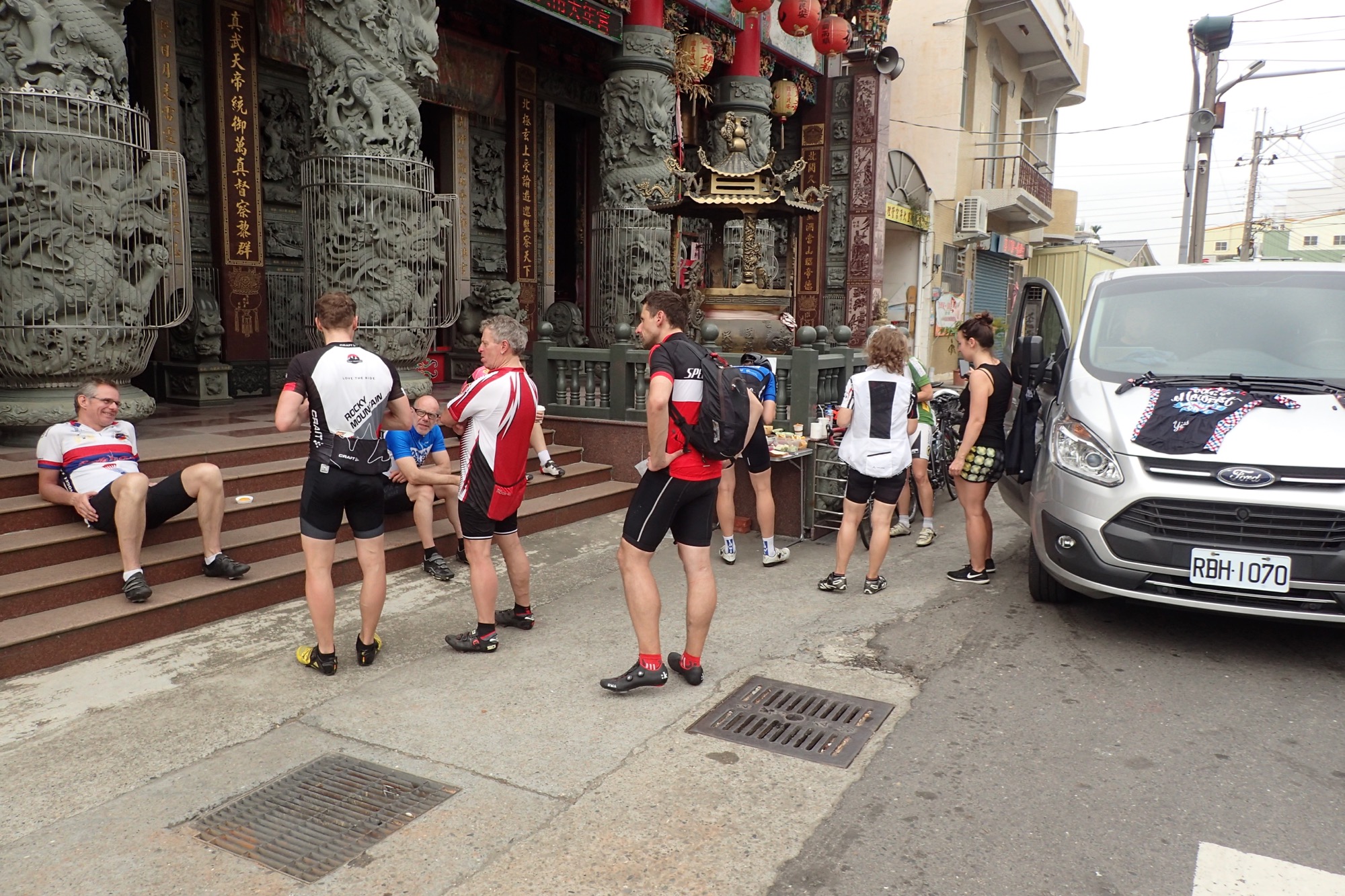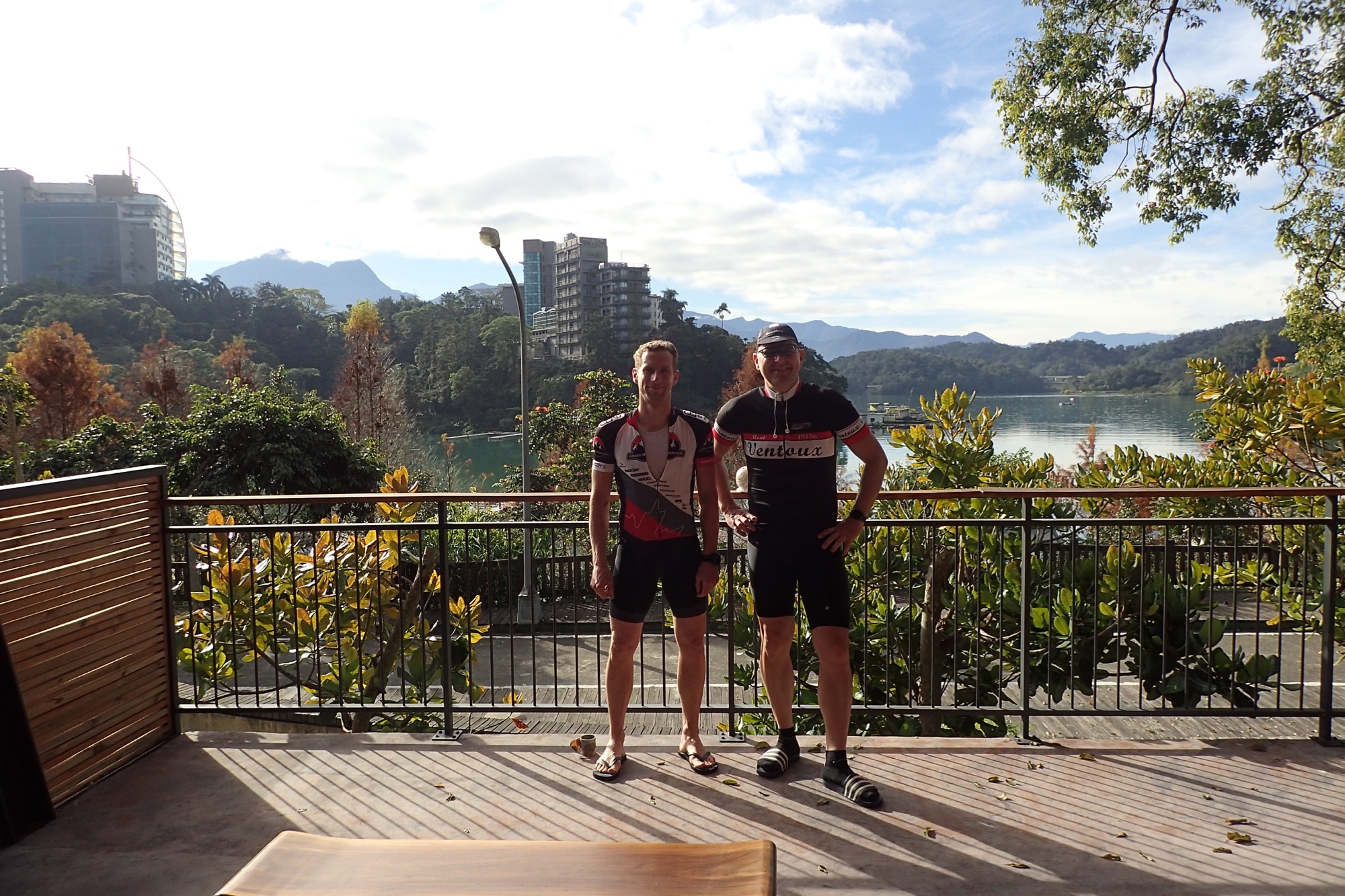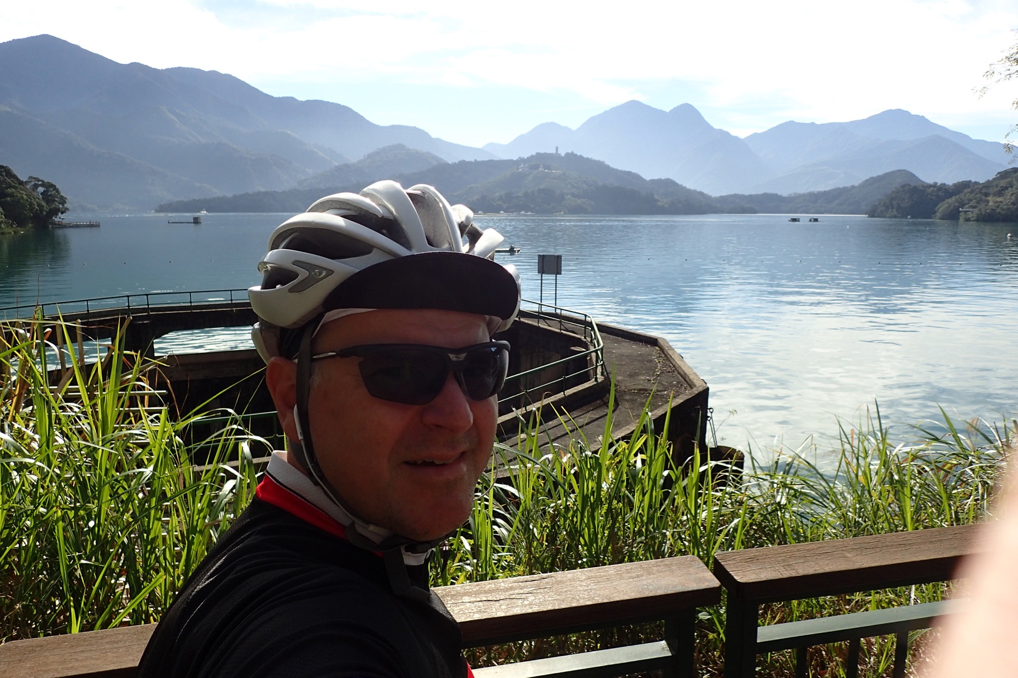 Nach einer sehr angenehmen Nachtruhe machten wir uns um kurz nach 7 auf zu unserer Frühstücks-Location. Das Frühstück war heute nicht typisch Taiwanesisch, sondern amerikanisch, und zwar in Form eines EggMuffins mit Latté in einem Fast-Foot-Joint. Nicht genug »Brennstoff« und so gab es noch mein beliebtes Milchbrötchen unter Schutzatmospäre von 7-Eleven, bevor es erst einmal den traumhaft schönen Radweg entlang des Sees ging. Alle paar Meter wollte ich zum Fotografieren anhalten, so pittoresk war das Ambiente. Voll mit Glücksgefühlen verpasste ich den Abzweig des Tracks und wurde erstmal ordentlich einen sehr steilen Hügel hochgeschickt, der mit einer extrem steilen Abfahrt endete. Endlich wieder auf der lila-Linie auf dem Garmin ging es nun endlose Kilometer bergab. Das müssen wir wohl gestern alles hoch gefahren sein?! Im Tal sammelten mich Julia und Sascha ein, die ich dann bis zur Pause begleitete. Zuvor aber noch ein unplanmäßiger Boxenstop, da mein Hinterrad die Luft nicht halten wollte. Dank Saschas Hilfe und meiner Kartusche musste nicht länger Zwangs-pausiert werden als nötig. Prima. Mit Brandenburger-Reisegeschwindigkeit ging es dann weiter zur Verpflegung.