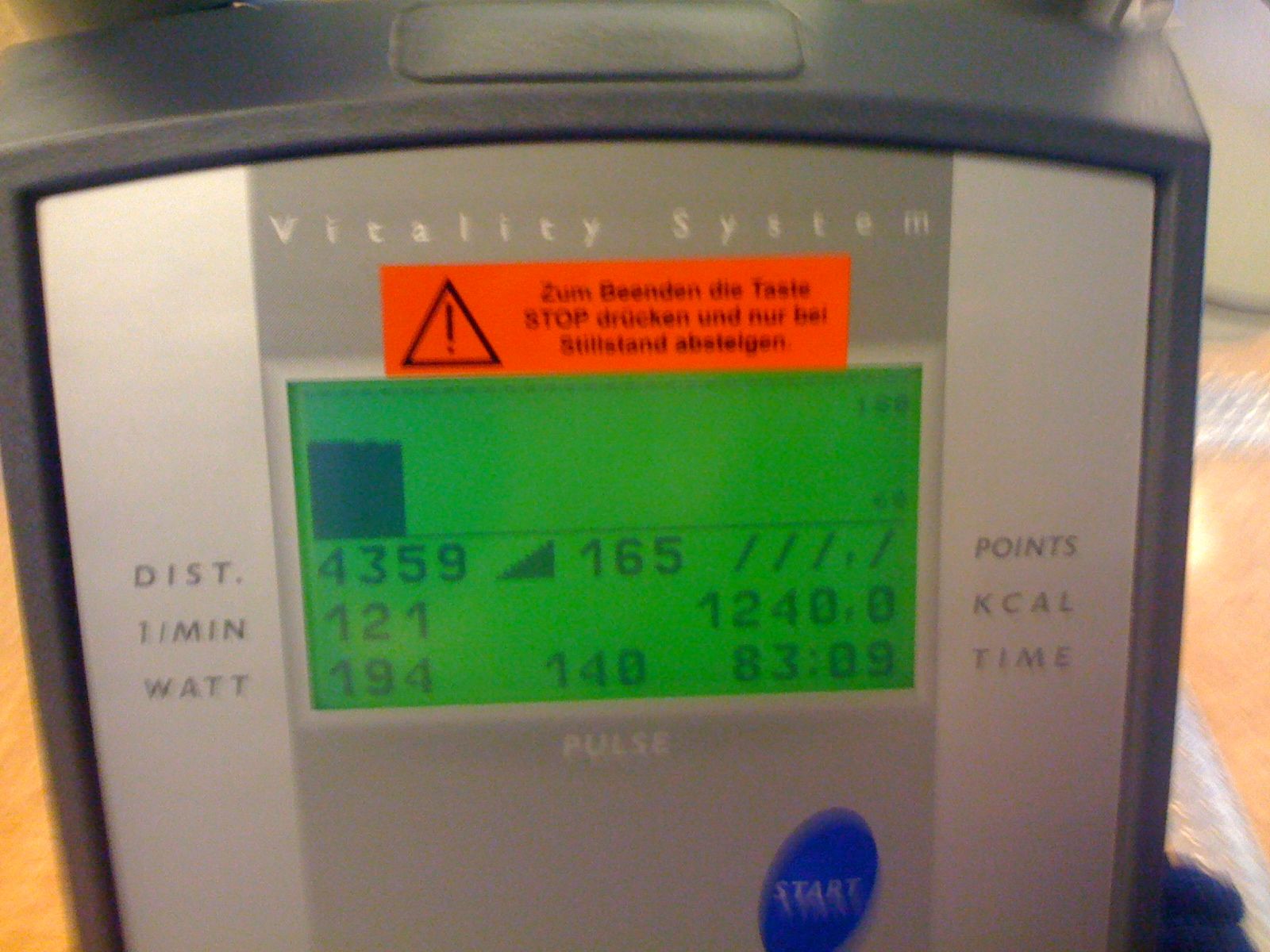 auf dem Programm. Die 20 Minuten Rudermaschine wurde mit einiger Anstrengung mit neuer Rekordstrecke von 5.272 Metern in 20 Minuten absolviert, das Krafttraining war, wegen der Woche Pause ein wenig zäh, hat aber trotzdem viel Spass gemacht und die 82 Minuten Crosstrainer – der Film ging genau so lange – wurden auch sauber abgespult.