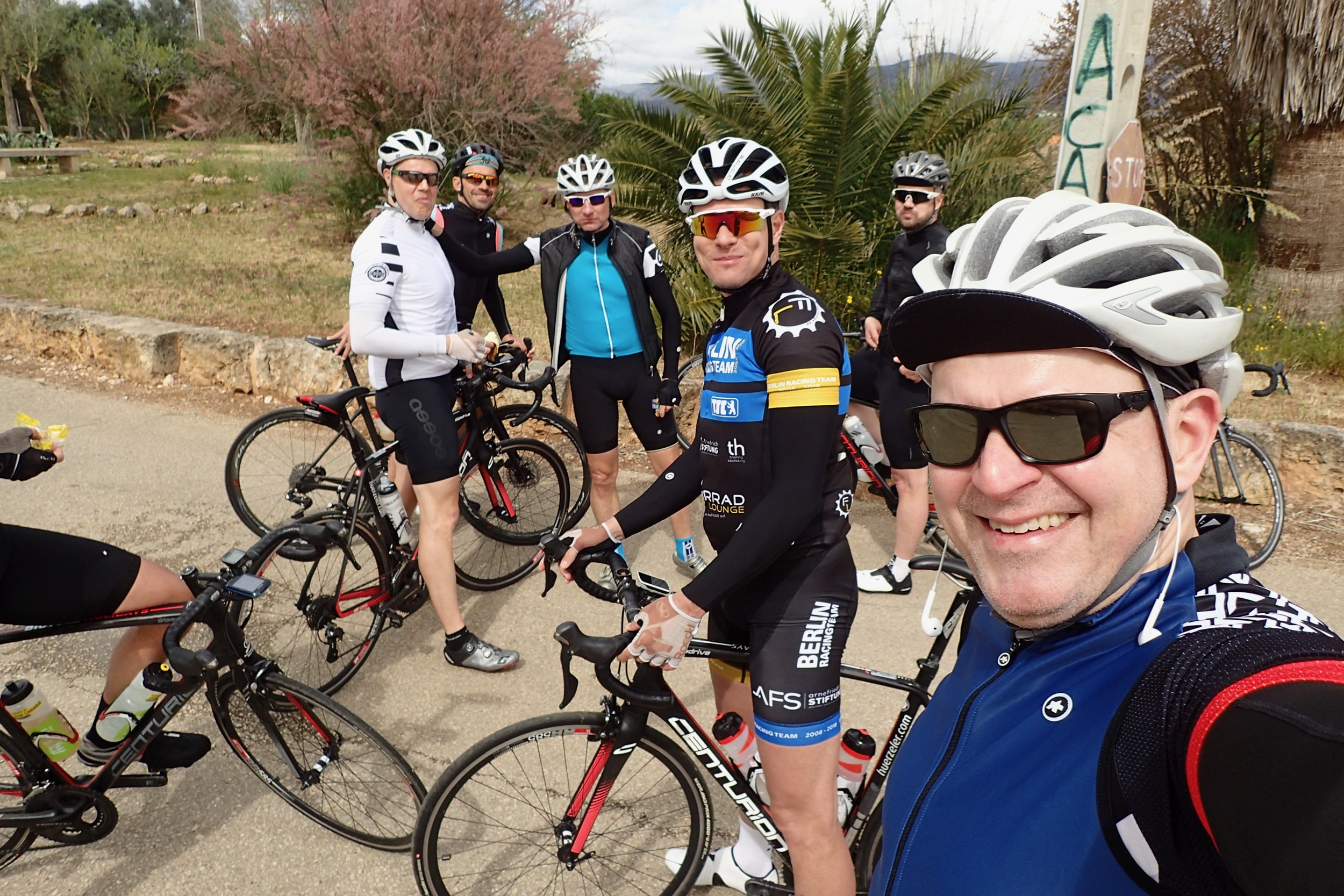 Als wir uns um 10 Uhr vor dem Hotel trafen war es sehr frisch und ich war froh, meine Weste und Armlinge übergestreift zu haben. Auf bekannten Wegen ging es erstmal durchs Schilf nach Sa Pobla und dann auf den Muro-Radweg. Irgendwann sammelten wir Volker, der am Wegesrand auf uns wartete, ein und fuhren gemeinsam weiter gegen den Wind nach Santa Maria. Es lief super und wir erreichten relativ locker Esporles. Nun ging es ans Höhenmeter sammeln und Segmente inhalieren. Es lief gut und für die meisten Mitfahrer hagelte es persönliche Bestzeiten. Oben musste noch die »Wand von Valdemossa« bezwungen werden bevor es runter nach Deià ging. Dort kehrten wir, wie gewohnt, in unserem Farmers-Market ein und genossen Sandwiches und Kuchen-Teilchen. Leider war es heute sehr windig, deshalb fiel uns das Weiterfahrern auch nicht all zu schwer. Nun wartete noch ein letzter Anstieg auf uns. Der Coll de Soller. Ein doch recht mieser Kanten, der auf 7,5 km einiges an Höhenmeter bot. Aber auch dieser Coll wurde genommen und dann ging es nur noch runter. Die Heimreise wurde nun trotz des Rückenwindes recht beschwerlich. Denn die meine Körner waren verbraucht und ich war in Gedanken schon beim morgigen Ruhetag.