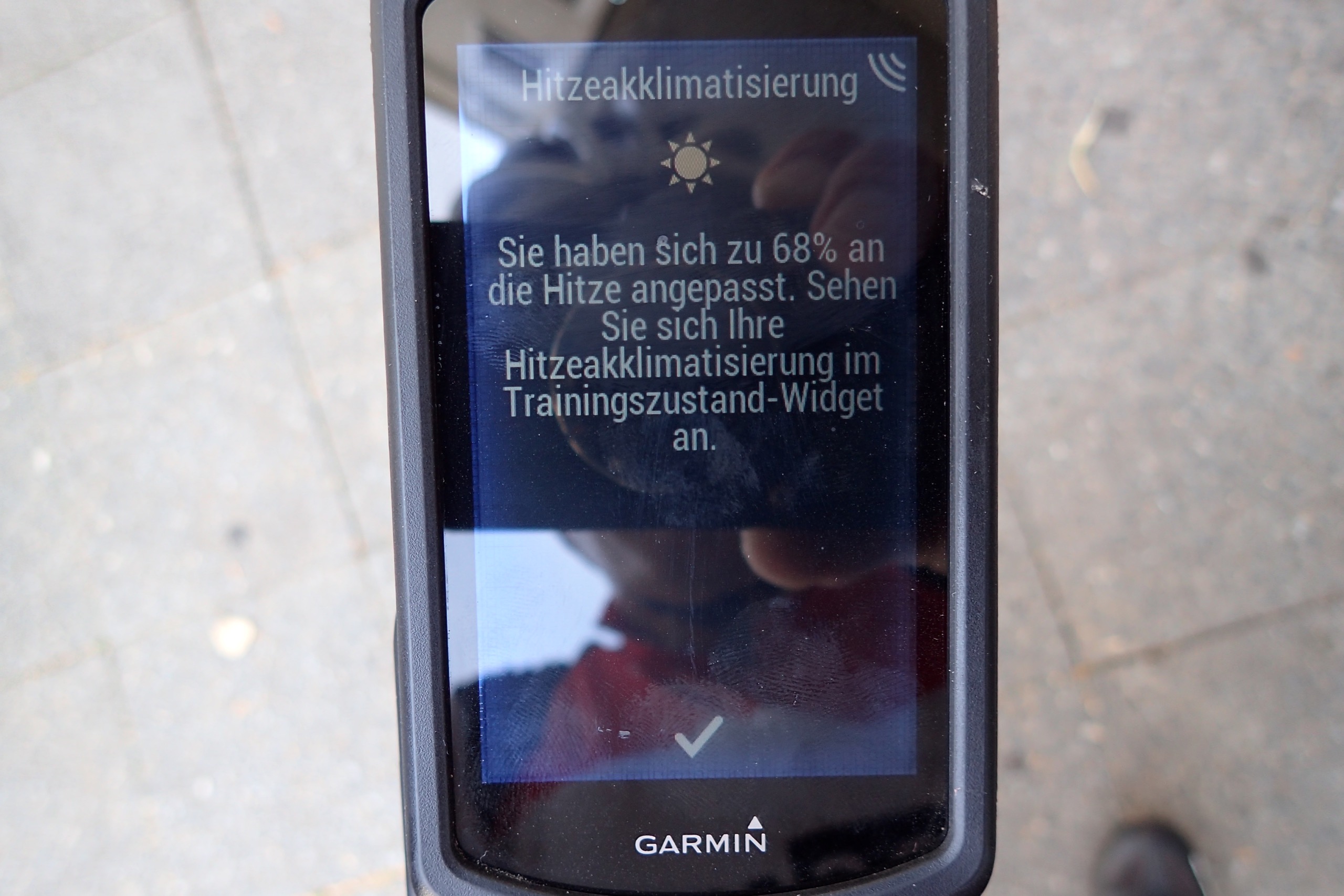 Zwei Kilometer-Berge gab es dann auch noch zu bezwingen, bevor die Homebase mit einem kalten Erdinger-Alkoholfrei erreicht war. Schöne Mini-Tour! Und an die Hitze scheine ich mich auch noch ein wenig mehr gewöhnt zu haben. Zumindest wenn man meinem Garmin glauben schenken mag.