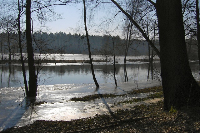 Es verging viel Zeit bis ich mich erneut an die niedrigen Temperaturen gewöhnt hatte. Die Sonne schien zwar, aber es waren Minusgrade und das spürte ich besonders an den Händen. Da halfen auch die abwechslungsreichen Gespräche erstmal nicht. Hinter dem Müggelberg wurde es dann besser und mein Körper akklimatisierte sich. Nun machte es auch richtig Spass, nachdem Gosen und Neu-Zittau passiert waren und es über schöne Waldwege Richtung Fürstenwalde ging. Die Landschaft war herrlich: Die Sonne erstrahlte das über seine Ufer getretenes und teils noch gefrorene Flussbett der Spree.