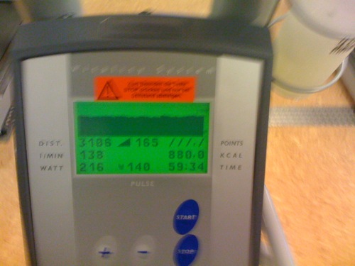 So mussten wieder Rudermaschine, Crosstrainer und Co herhalten. Auf der Rudermaschine habe ich erst gar keinen Bums entwickeln können, so dass ich Zweifel hatte die 20 Minuten überhaupt durchzuhalten. Dann ging es aber doch und das Endergebnis war sogar weit über der 5.200 Marke: 5.248 Meter!