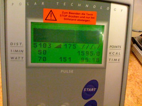 Wie schon am Sonntag wollte ich heute wieder ausschließlich die Ausdauer trainieren. Da kam es mir sehr gelegen, das ich noch den Film »Antarctica – Gefangen im Eis«, auf meinem iPhone hatte. Dieser lief mit herausgeschnittenen Werbeunterbrechungen genau 1:44 Stunden und so lang sollte meine Einheit auf dem Crosstrainer auch werden. Der Film war eher langweilig aber er half mir gut über die Zeit.