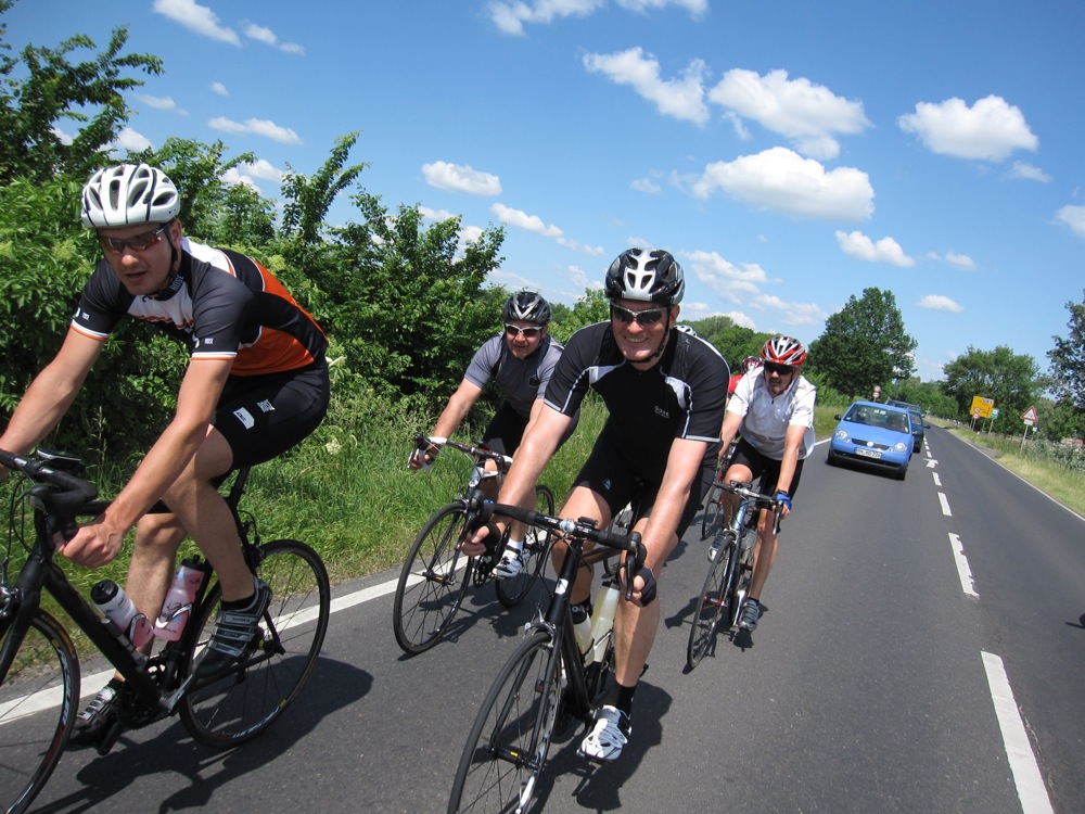 Eine klassische Win-Win-Situation, denn wir freuten uns über seinen hohen Druck auf den Pedalen und den damit verbundenen Windschatten und er brauchte nicht mehr alleine durchs Havelland zu pedallieren. Sebastian und Ralph in der Führung: Da blieb kein Auge trocken.