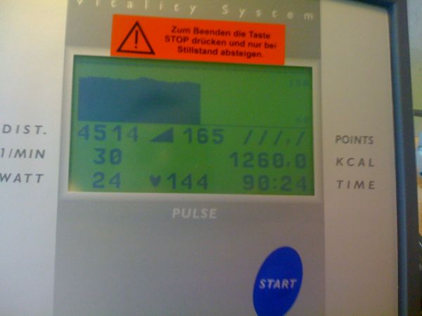 Die Einheit begann wie immer mit der Rudermaschine und es sah lange Zeit nicht so aus, als könne ich die 5.200-Meter-Marke knacken, nach gut 10 Minuten nahm ich aber alle Kraft zusammen und drehte auf, sodass meine Marke erreicht wurde.